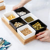 Bandeja Moderna de Cerâmica com Bambu para Lanches e Frutas