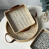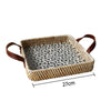Bandeja Elegante de Rattan com Alça de Couro