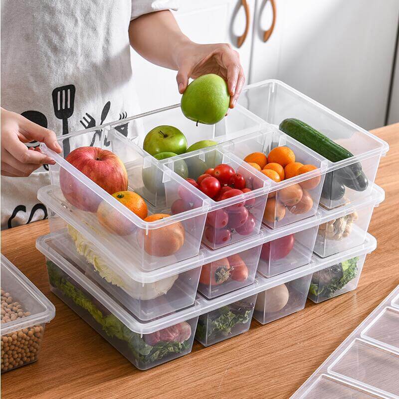 Uma Caixa organizadora com diversos compartimentos dentro. Caixa Organizadora com Compartimentos, Caixa com Divisórias, Caixa Organizadora, Caixa Multiuso, Caixa Transparente, Caixa Multifuncional, Organizador com Divisórias, Organizador Transparente, Organizador para Closet e Armários, Organizador de Geladeira, Caixa para Geladeira, Caixas Organizadoras Empilháveis. Loja Comprinha do Futuro