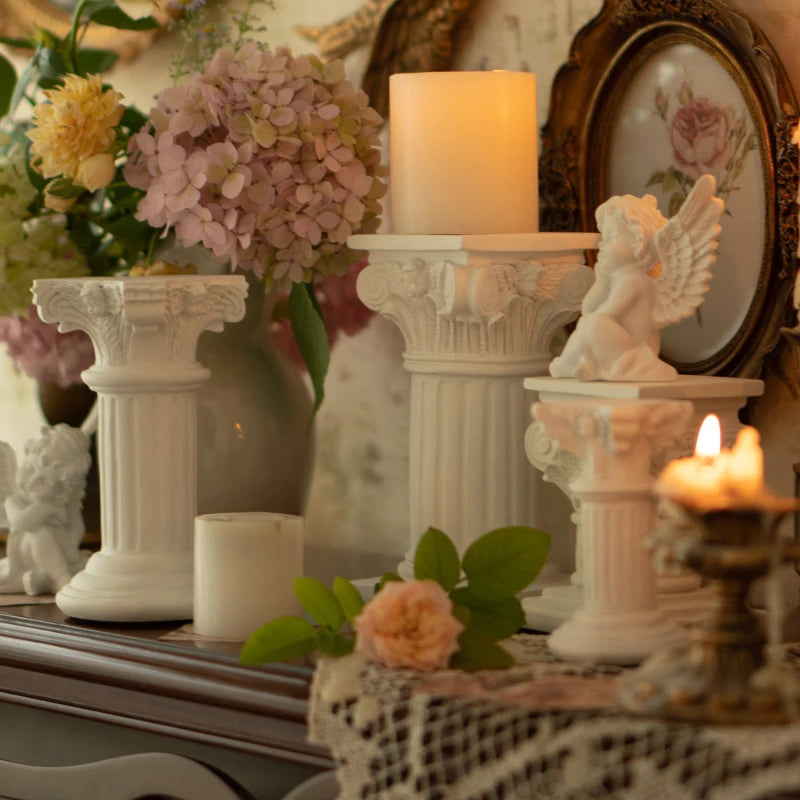 Castiçal Pilar Europeu de Resina Elegante