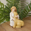 Esta delicada escultura de resina captura um momento de ternura pura entre uma anjinha e seu adorável cachorrinho, transmitindo uma sensação de afeto, proteção e carinho incondicional.