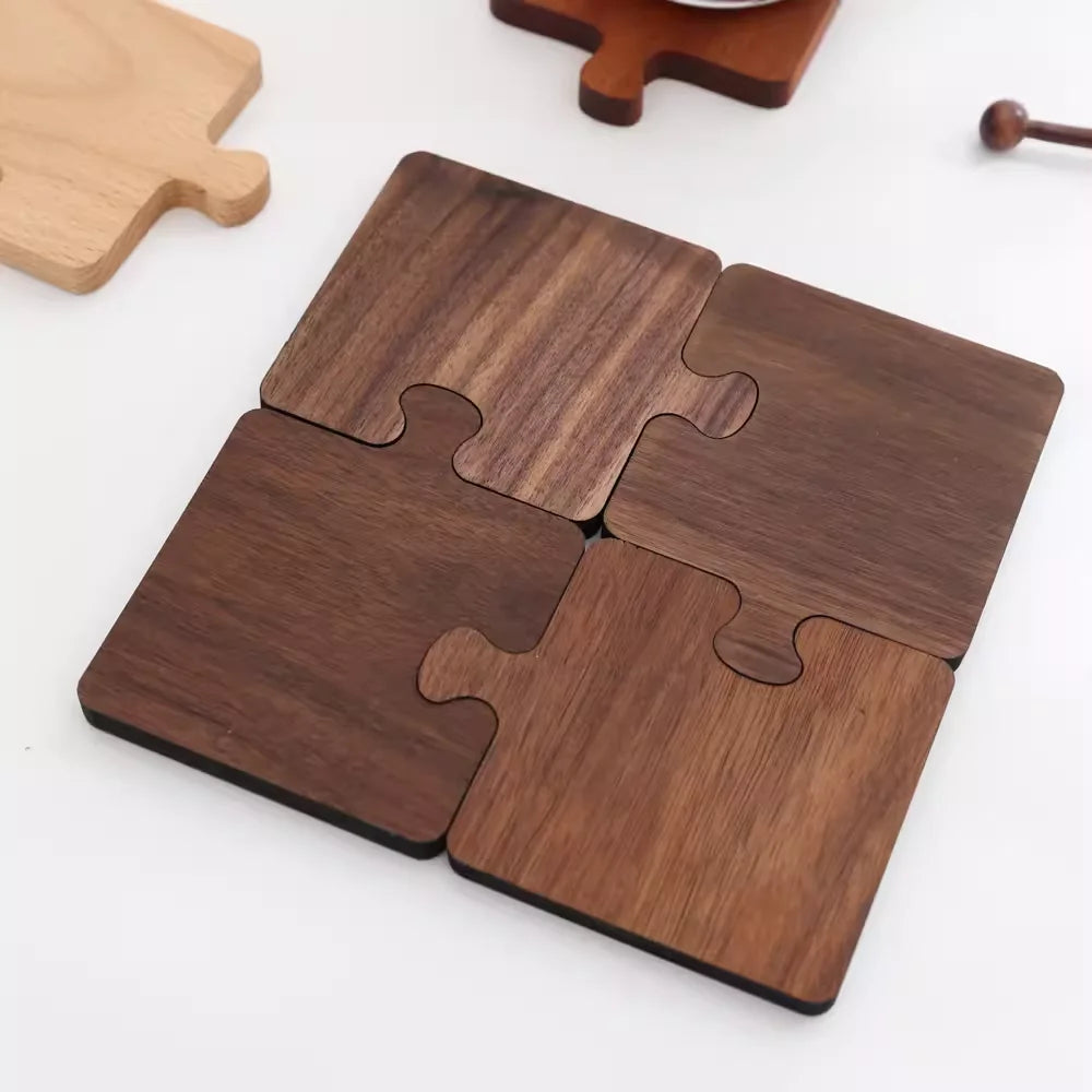 Porta Copos Quebra Cabeças de Madeira